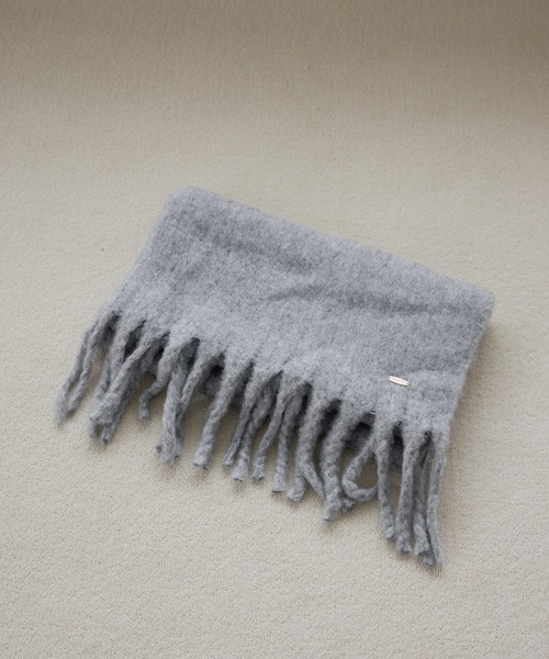 ロングフリンジがポイントのモヘヤ混ストール