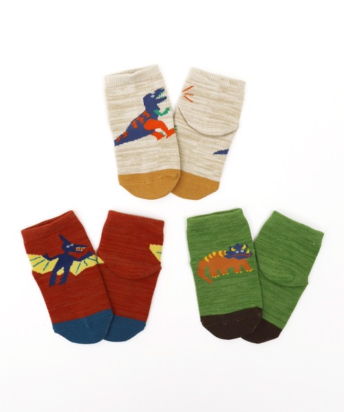 3つが違う色、デザインの為3足セットに見えず、毎日その日の気分で恐竜を選ぶことも出来ます◎