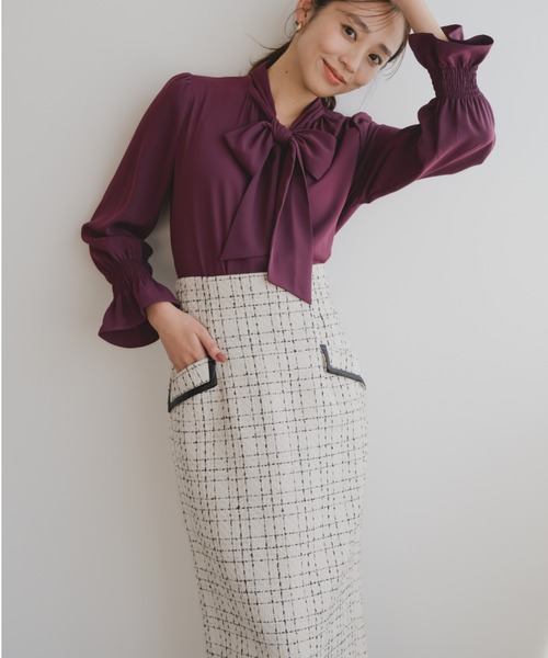 秋冬らしいツイードチェックで仕立てたタイトスカート