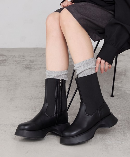 程よいボリューム感のソールが特徴のサイドゴアショートブーツ。