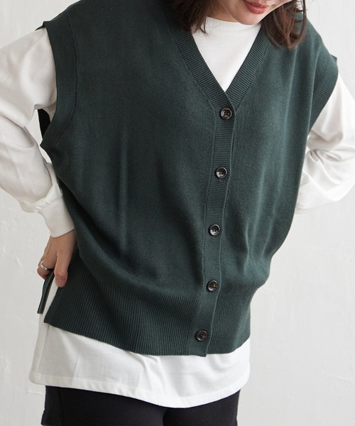 【デザイン】ニットベストは、前後2WAY+ボタン開きでジレとしても使える3WAYデザイン。