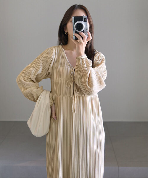 大人気インフルエンサー【yuiさんコラボ】の前後2way長袖プリーツワンピース。