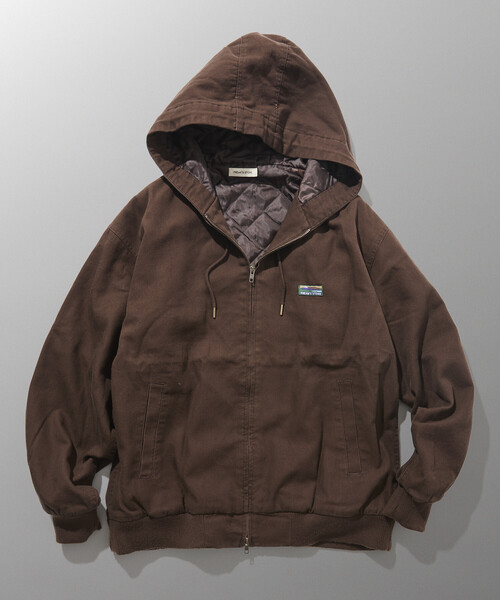 2025 Fall & Winter itemダック地×キルティング裏地のアメカジ定番デザインビッグシルエット ジップフーディ ダックジャケット●タフな印象のダック地を使用したトレンドのジップアップパーカー型のフードブルゾン