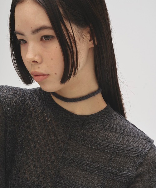ほどよく毛足のある糸で編み上げたニットリボンチョーカー。軽やかな付け心地で、素材感がシーズンムードを引き立て、まだ暑さの残る晩夏から取り入れやすいアイテム。シンプルなスタイリングに合わせるだけで、こなれたニュアンスを演出してくれます。