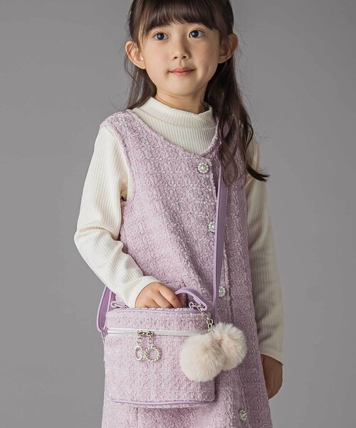ツイード素材とポンポンチャームがかわいい、2WAYバニティバッグ。