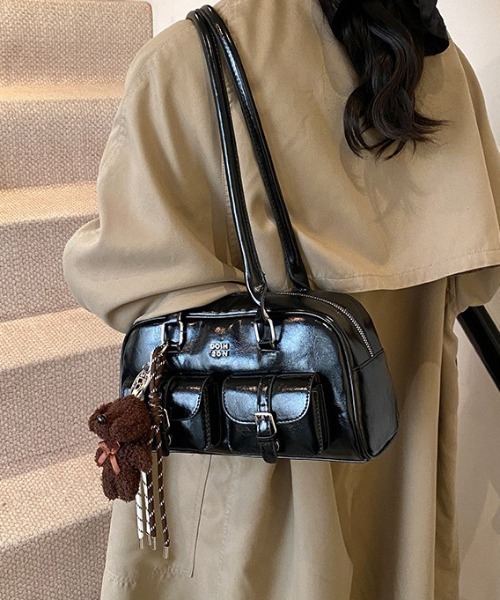 ・光沢感のある素材(エナメル調)がレトロで大人っぽい雰囲気を演出