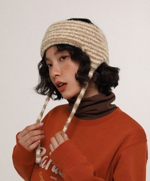 ふんわりとしたニット素材で仕上げた、耳まで暖かいヘアバンタイプのイヤマフ。