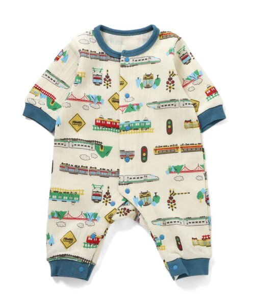 Ampersand(アンパサンド)のカバーオール・ロンパース「【リンク】電車柄ニットキルトカバーオール」は、小さなお子様への贈り物や出産祝いにも最適。カジュアルスタイルが好みなベビーにおすすめ♪