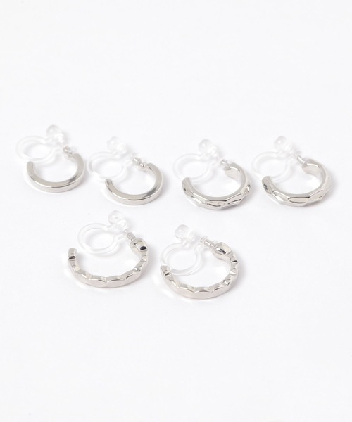 フープデザインのノンホールピアス、3セット(計6点)。