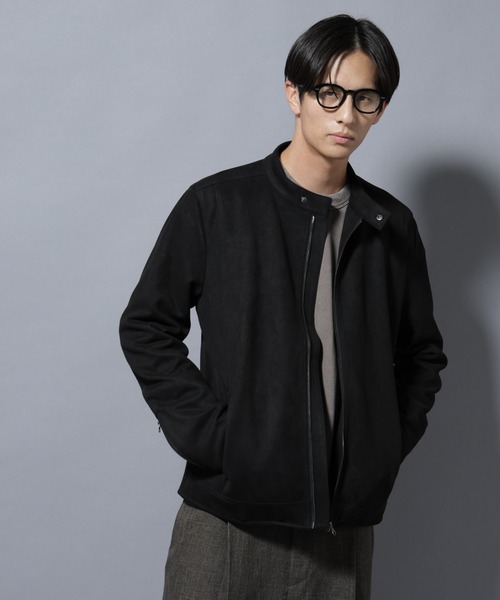 上品な見え方で都会的なフェイクスエードシングルライダース。素材にはフェイクスエードを使用。本革の風合いを感じさせながらも、伸縮性に優れイージーケアなのも嬉しいポイント。インナーとしてもアウターとしても着用可能なロングシーズンお楽しみいただける1着です。