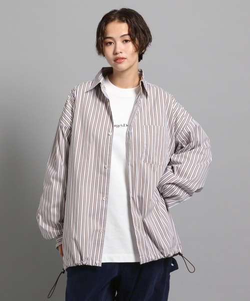 着回し易いストライプ柄のワイドシャツ。