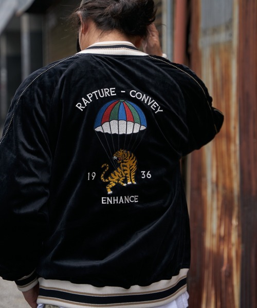 ■デザインフロントとバックに大胆なトラ刺繍を施したスカジャン。