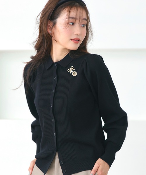 上品な衿とふんわりパフ袖をあしらったカーディガン。