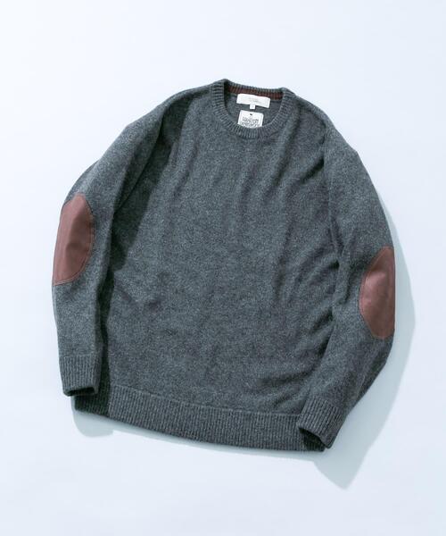 【高級ラムズウールで織りなす、エルボーパッチがアクセントな上質ニット】希少性が高い羊毛として世界に知られるハミルトンラムズウール。