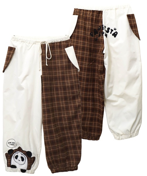 【テーマ】『ゆるくてカワイイ』をコンセプトにした『PANDIESTAシリーズ』から、ハリのある無地のポリエステルナイロン生地とふんわりとした手触り感のチェック生地で切り替えたシャカシャカバルーンパンツをデザインしました。