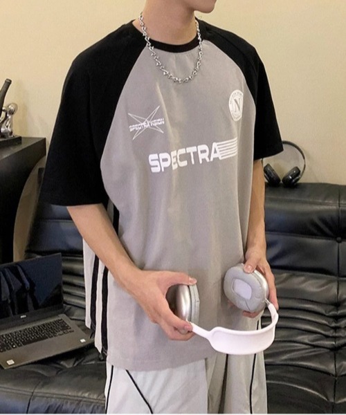 【NOWLE】バイカラー ストリート フットボール ラグラン Tシャツ