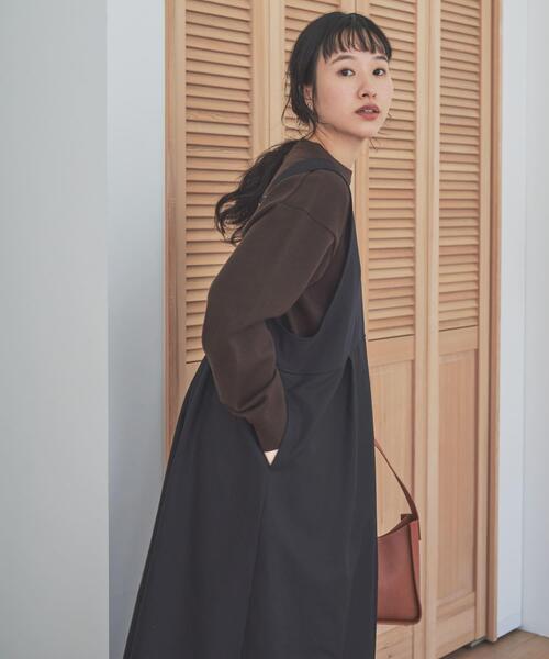 深めUネックで抜け感を演出、スタイルアップも叶えるジャンパースカート深いUネックラインが女性らしい抜け感を演出するジャンパースカート。