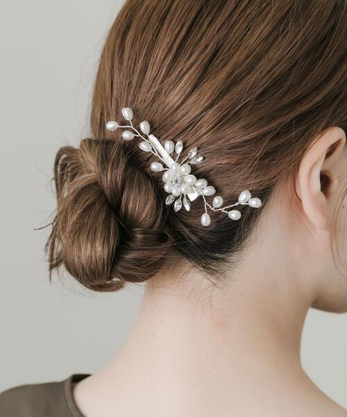 【髪に添える上品な艶めき】●パールとビジューの美しいコンビネーション