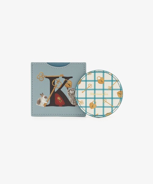 クラシカルなキーやハートの錠がアクセントになったデザインに仕上げました。ケースには「K」のイニシャルやうさぎと猫のアートをあしらい、ミラーにはキーのモチーフにチェック柄を組み合わせてコントラスト感を演出。ご自分用にはもちろん、ちょっとしたギフトにもおすすめです。