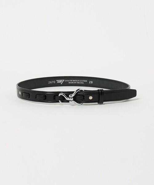 フック型のバックルが特徴的な<TORY LEATHER>のベルト。