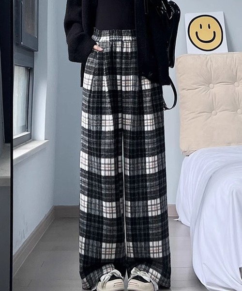 ふんわり起毛感のあるチェック柄パンツ