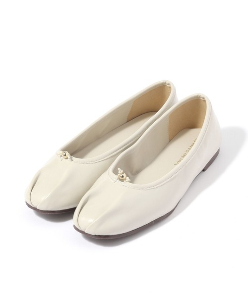 つま先ギャザーとメタルパーツがポイントのフラットパンプス。