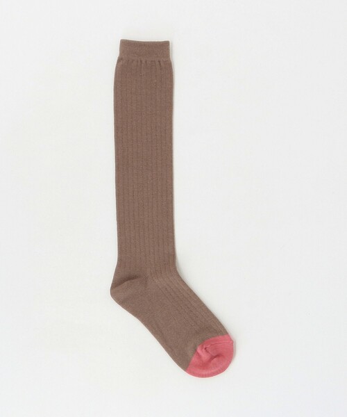 つま先のバイカラーデザインがポイントのリブハイソックス。