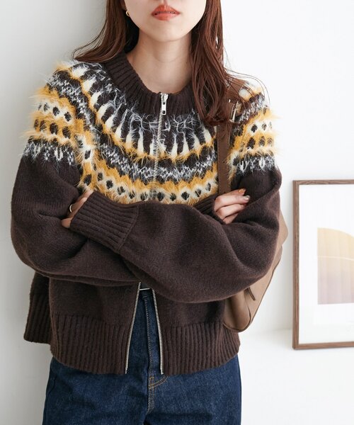 ●STAFF着用コメント155cmスタッフ:求心柄デザインがコーデの主役に!ジップを少し開けると抜け感がでるのでおすすめです◎