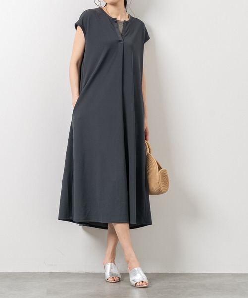 さらさらとした肌触りと、とろみ感のあるジャージー素材を使用したフレンチスリーブワンピース。