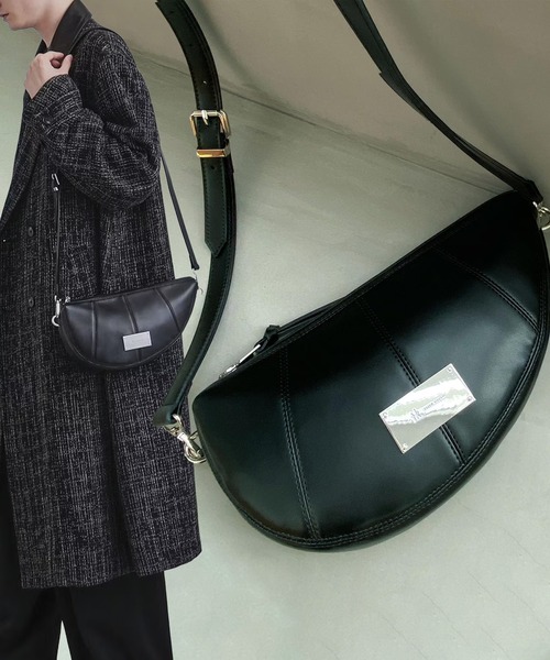 トレンドのアシンメトリーなハーフムーンショルダーバッグ。