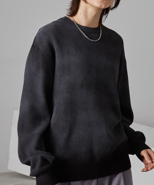 ラバースプレー加工でフェード感と奥行きのあるグラデーションをプラス。1枚でコーデが決まる長袖クルーネックニット。