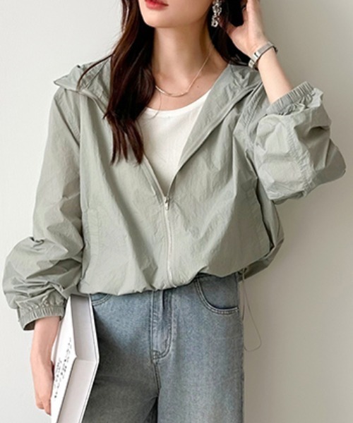 参考商品名:【8色展開】 撥水加工 シアー風 パフスリーブ マウンテンパーカー シアー パーカー スポーツ UV対策 冷房対策 春服 夏服