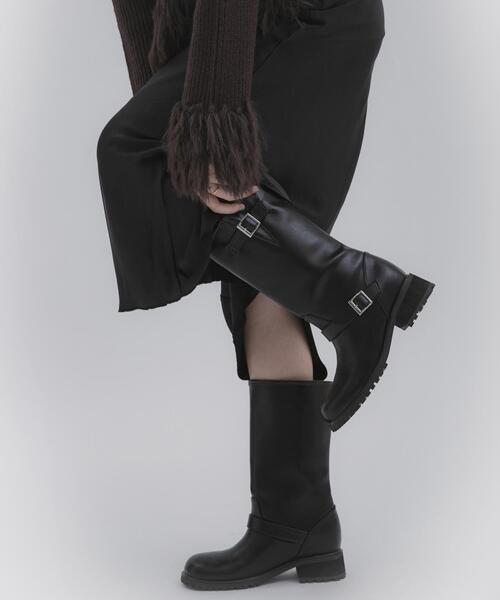 【スタイルアップも叶う。トレンドのミドルブーツ】・BLACKは程よいツヤ感のフェイクレザー、L.BEIGEはヴィンテージ感のあるヌバック調フェイクレザー