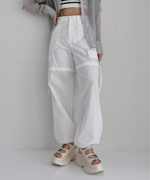 キーワード:カーゴパンツ レディース ウエストゴム ストレート フルレングス レギュラー ワイドパンツ 無地