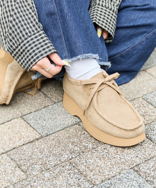 カジュアルながら大人っぽく履ける厚底スエードモカシン