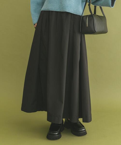 ハリ感で華やぐ、上品タフタスカート。軽やかで上品な光沢を放つタフタ素材のスカート。ほどよいハリ感がシルエットを美しく引き立て、歩くたびにふんわりと揺れるデザインが魅力です。シンプルなアイテムに合わせるだけでコーデが洗練され、デイリーにもお出かけにも活躍。トレンドに左右されず長く使える、頼れるベーシックアイテムです。