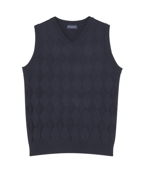 シンプルなダイヤ柄デザインのベストは、着回し力抜群な一着。