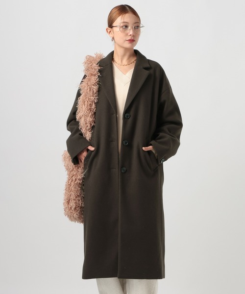 テーラー型の細目の衿でシルエットをすっきりさせたロングコート