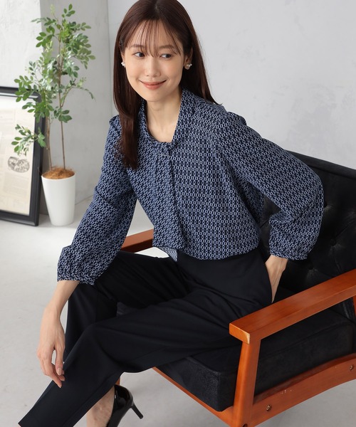 ボウタイ風のパーツ使いがエレガントなブラウス。