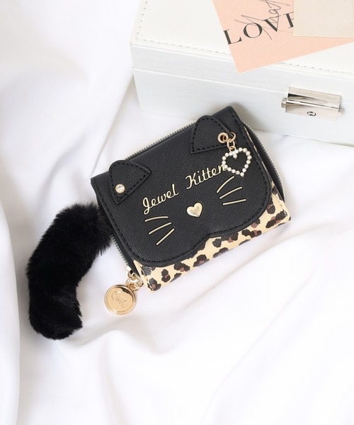 可愛らしい猫の顔とレオパード柄の組み合わせが特徴的なミニ財布です。