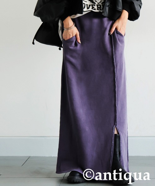 ヴィンテージ風のピグメント加工が魅力のスウェットスカートは、こなれた雰囲気で普段着にも映える万能ロングスカートです。