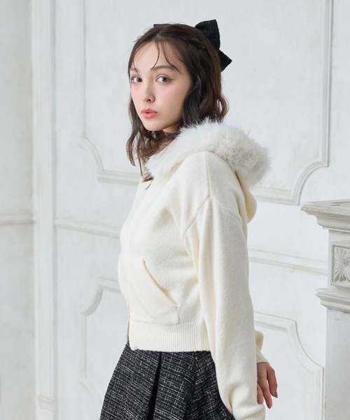 大きめのフードに、取り外し可能なふわふわのエコファーがついて、あざとかわいいシルエットに?