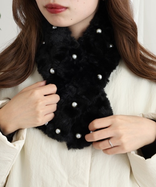 差し込むだけで簡単に着用できるパールティペットは、ふわふわのボア素材とパールの組み合わせが上品で可愛らしく、首元の防寒とコーデのアクセントを両立。