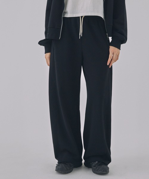 カーブシルエットで女性らしいラインを演出しつつ、動きやすさも兼ね備えた万能スウェットパンツです。