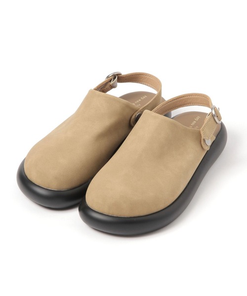 かかとにかけることもできるベルトは一部がゴム仕様になっていて、