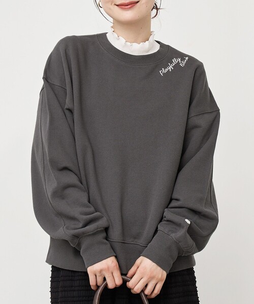 ■デザイン/素材襟ぐりに筆記体ロゴ、袖口にハートのワンポイント刺繍をあしらった、ベーシックな裏毛プルオーバー。