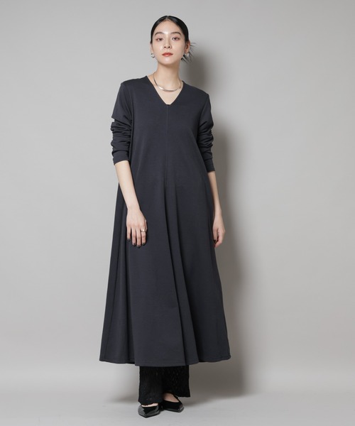 ・シンプルなフレアシルエットが品のあるロングワンピース