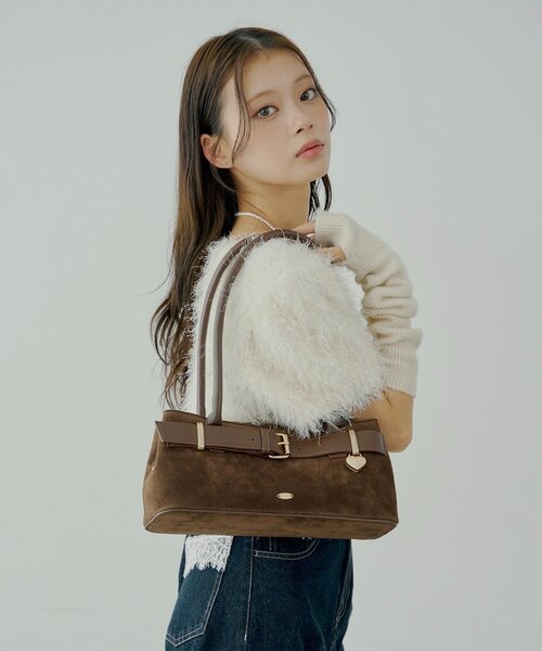 大人可愛いハートキーチャーム付きベルトボストンバッグ登場!?商品ポイント・ころんとしたフォルムとフロントのベルトデザインが魅力のボストンバッグ。