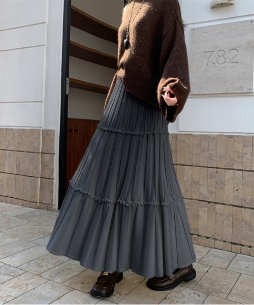 揺れるフレアで華やぐ、表情豊かなニットスカート