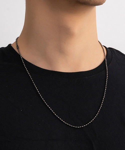 メンズ シンプル ボールチェーンネックレス シルバー ブラック ゴールド ユニセックス 韓国 韓国ファッション